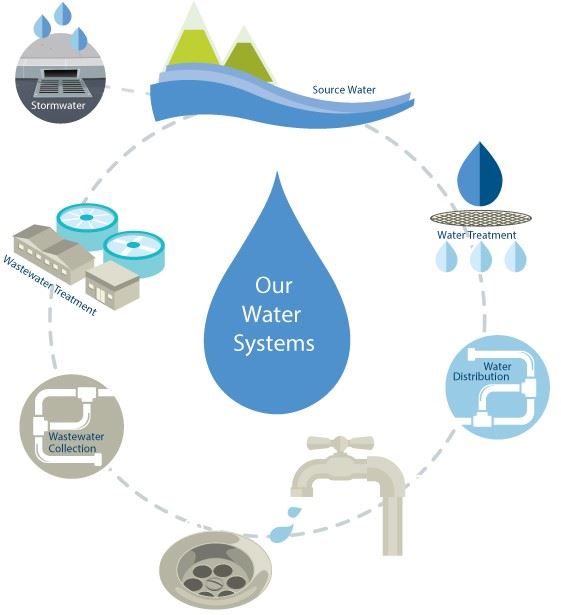 Finally, there is the sanitary sewer system which consists of the drains inside citizens homes that use gravity to drain used water to the wastewater treatment plant. There the water is treated before being discharged to the Arkansas River.